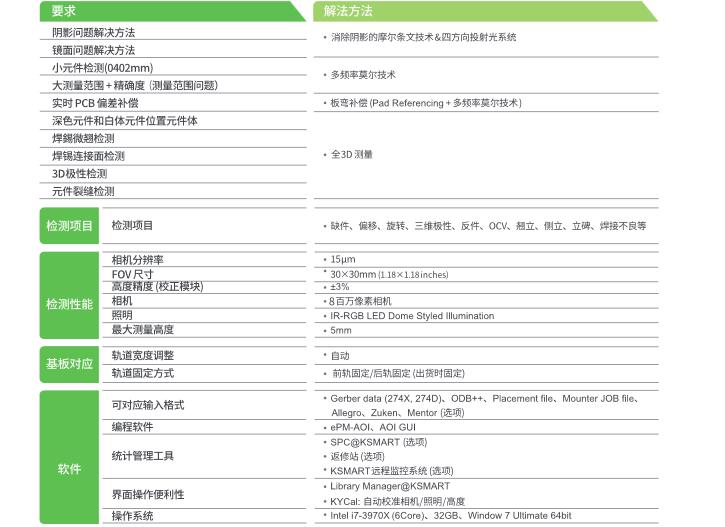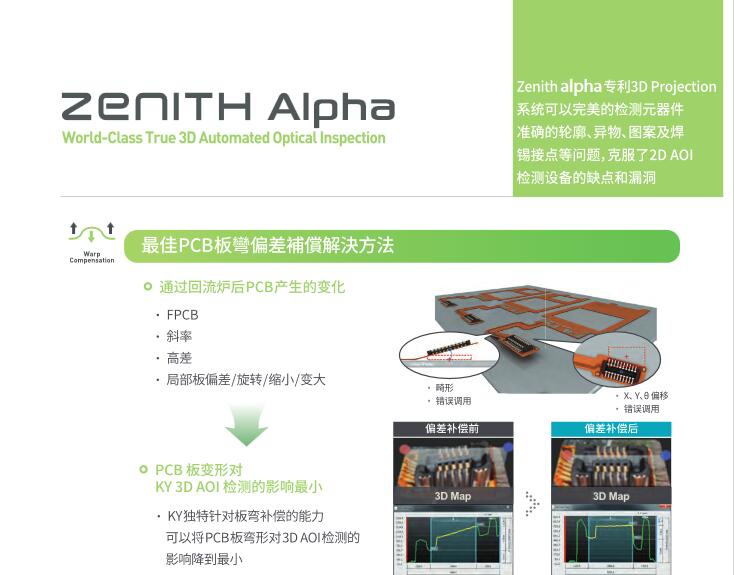KOH YOUNG Zenith Alpha 3D AOI 利用Koh Young人工智能專利技術(shù)提高3D檢測性能 可適用于復雜產(chǎn)線的高速檢測 性價比好的設(shè)備 可檢測高元器件(Alpha HS+) 基于人工智能技術(shù)的3D幾何自動編程(KAP) KSMART 解決方案:基于全3D檢測的監(jiān)控系統(tǒng)