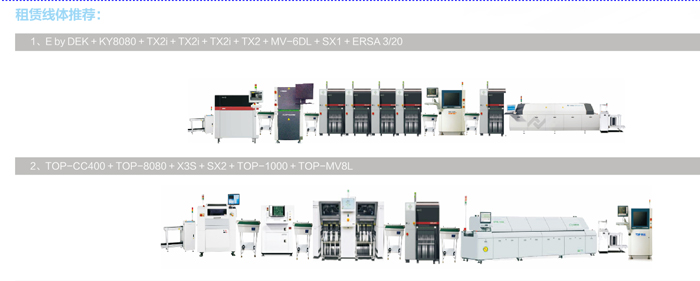 租賃業(yè)務(wù)內(nèi)容:貼片機(jī)生產(chǎn)線所有設(shè)備均提供租賃,可單租,也可整線租賃,維修服務(wù)也可通過租賃方式實(shí)現(xiàn)。
