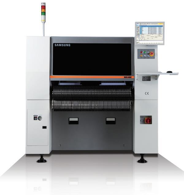 Samsung三星貼片機(jī)SM482 是在高速貼片機(jī)SM471的平臺基礎(chǔ)上針對異型元器件對應(yīng)能力進(jìn)行強(qiáng)化的,配有1個懸臂6個軸桿的泛用機(jī),最大可貼裝□55mm IC,支持Polygon識別方案,并且針對形狀復(fù)雜的異型元器件提供最優(yōu)的解決方案